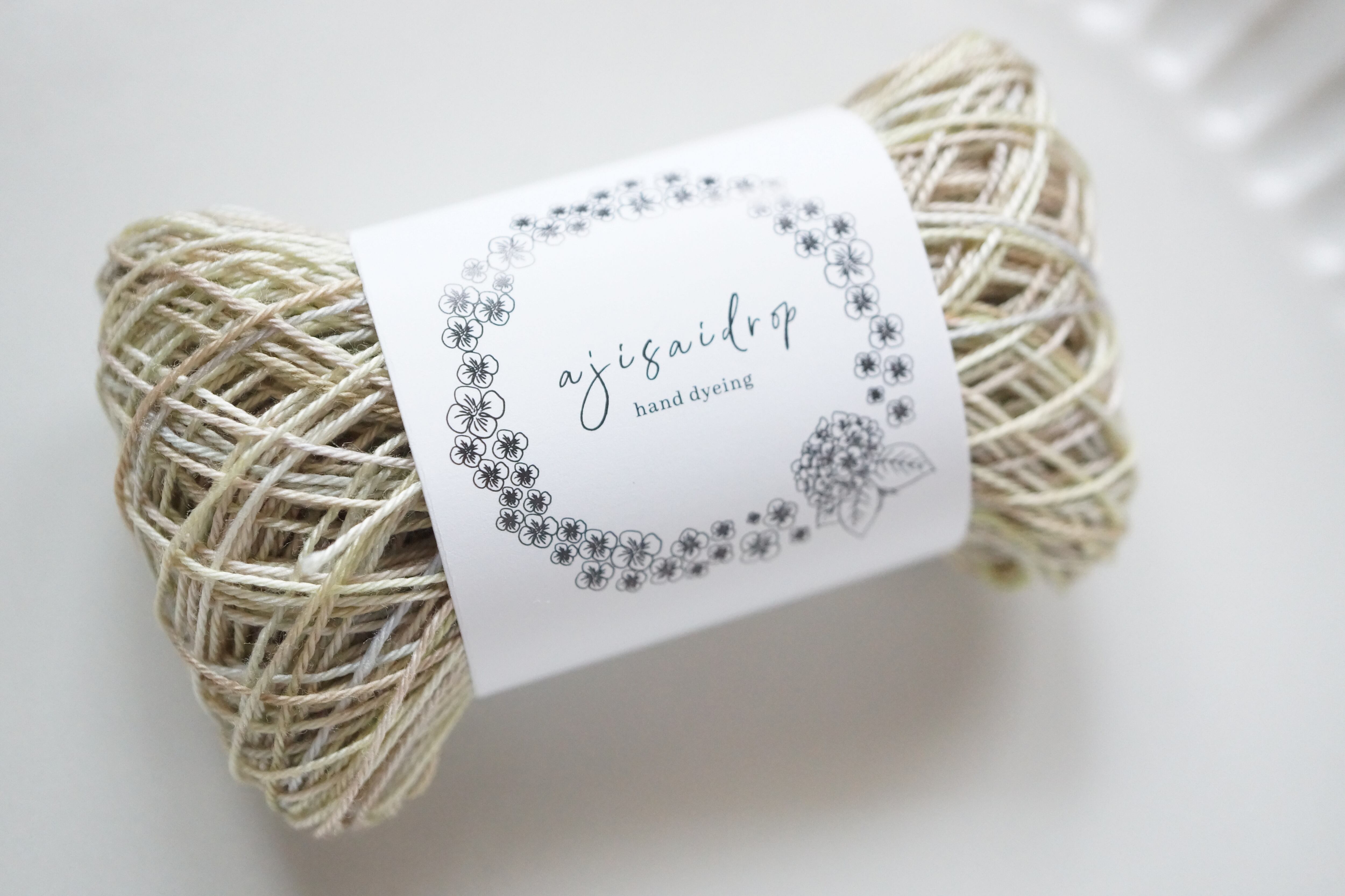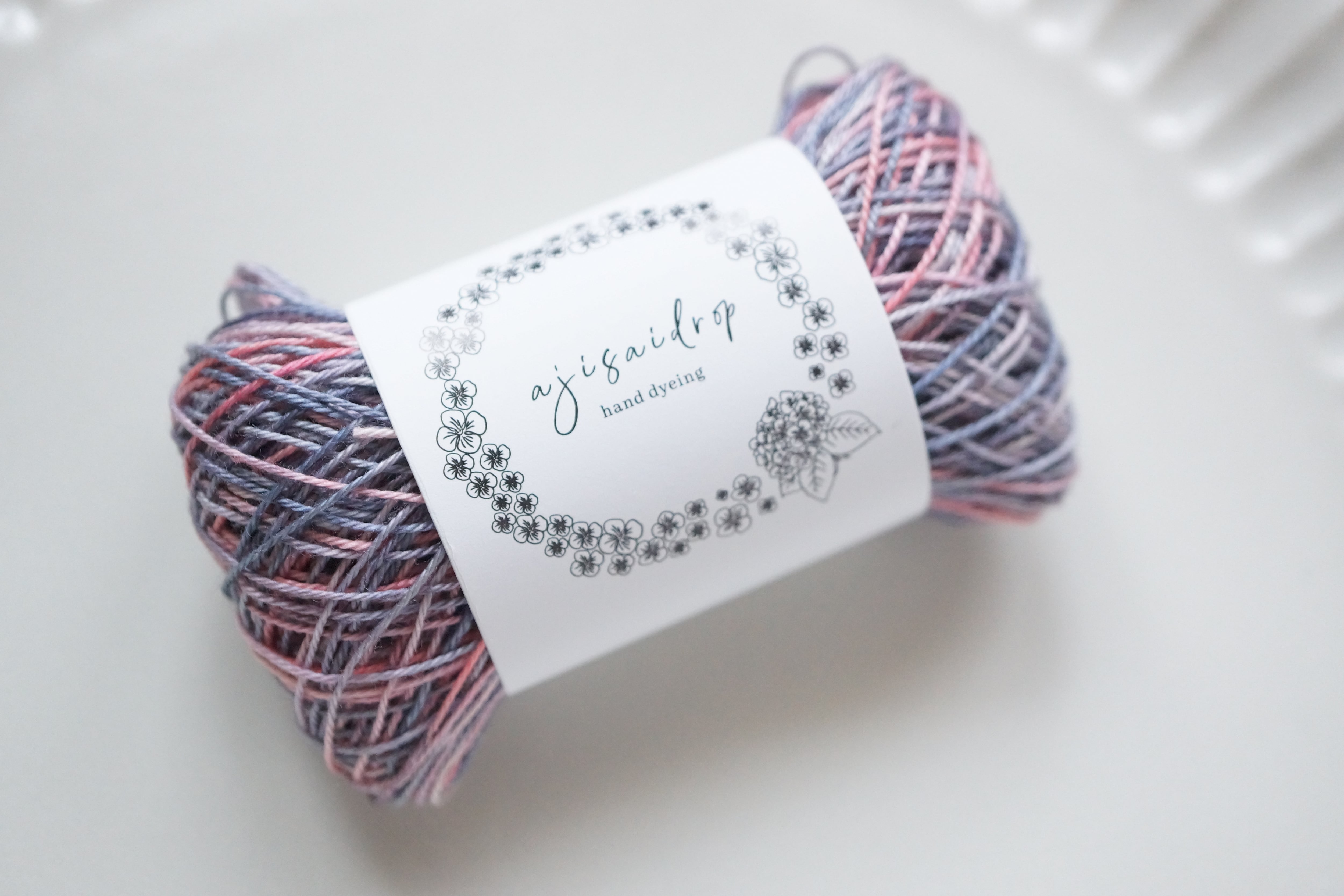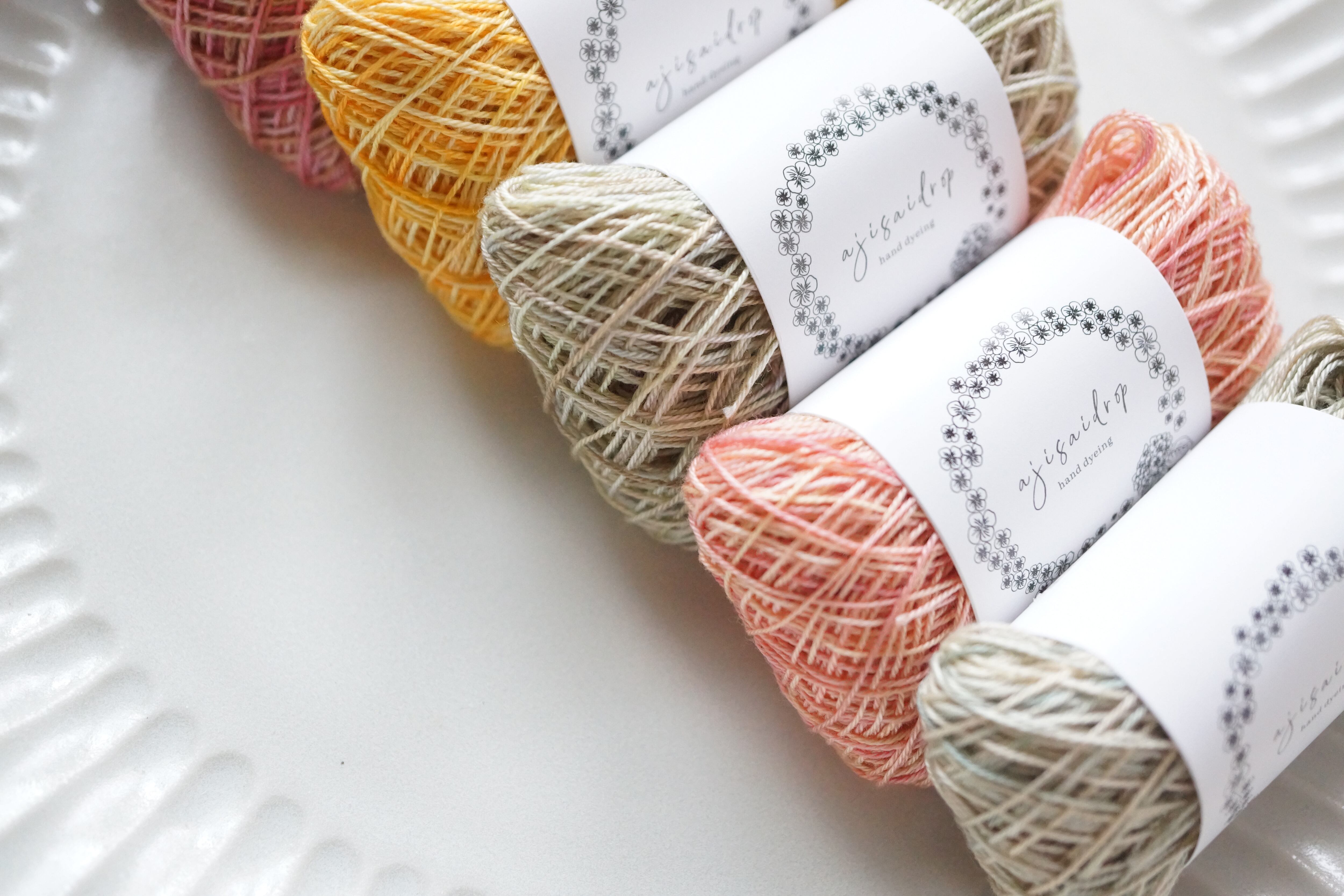 この糸は、ajisaidrop独自の“たゆたう染め”で仕上げました。