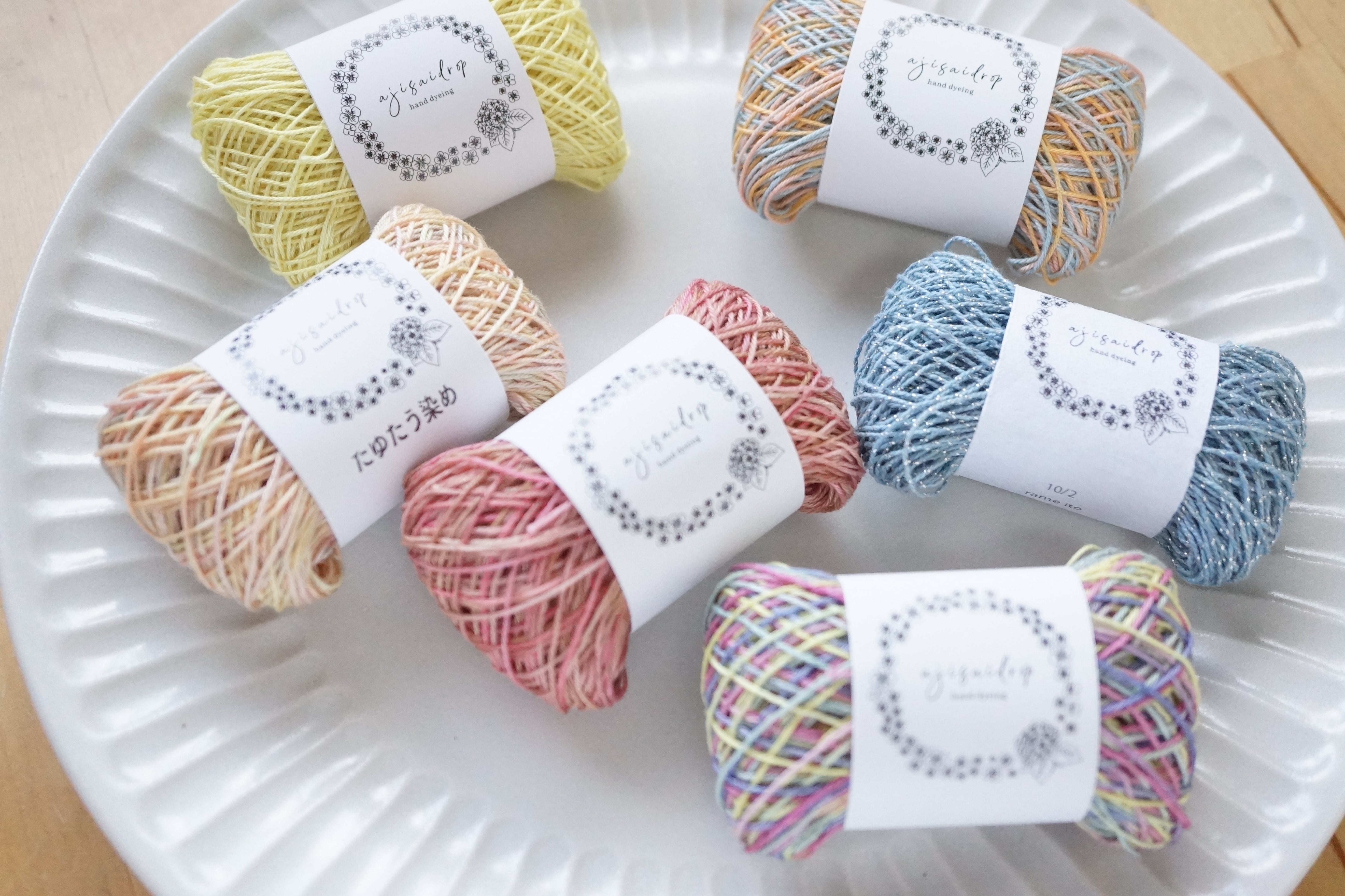 大切に染めていますが、手染めなので色ムラがあったり、糸の継ぎ目がある場合があります。