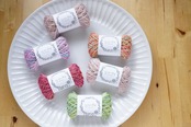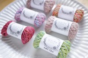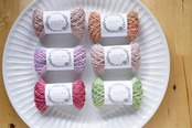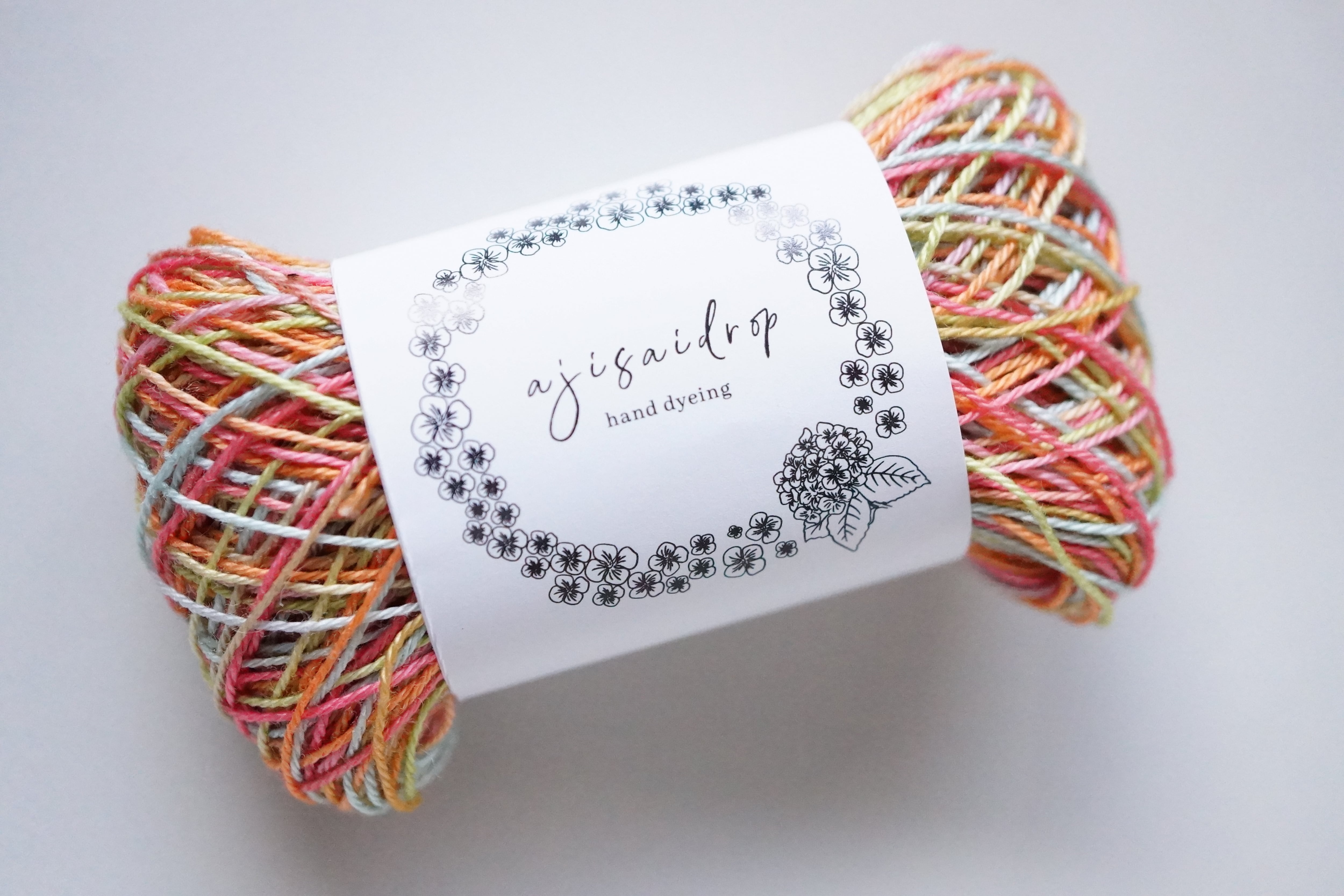 まるでガラス瓶に詰まった色とりどりのドロップを思わせる、弾けるような色彩の段染め糸は、