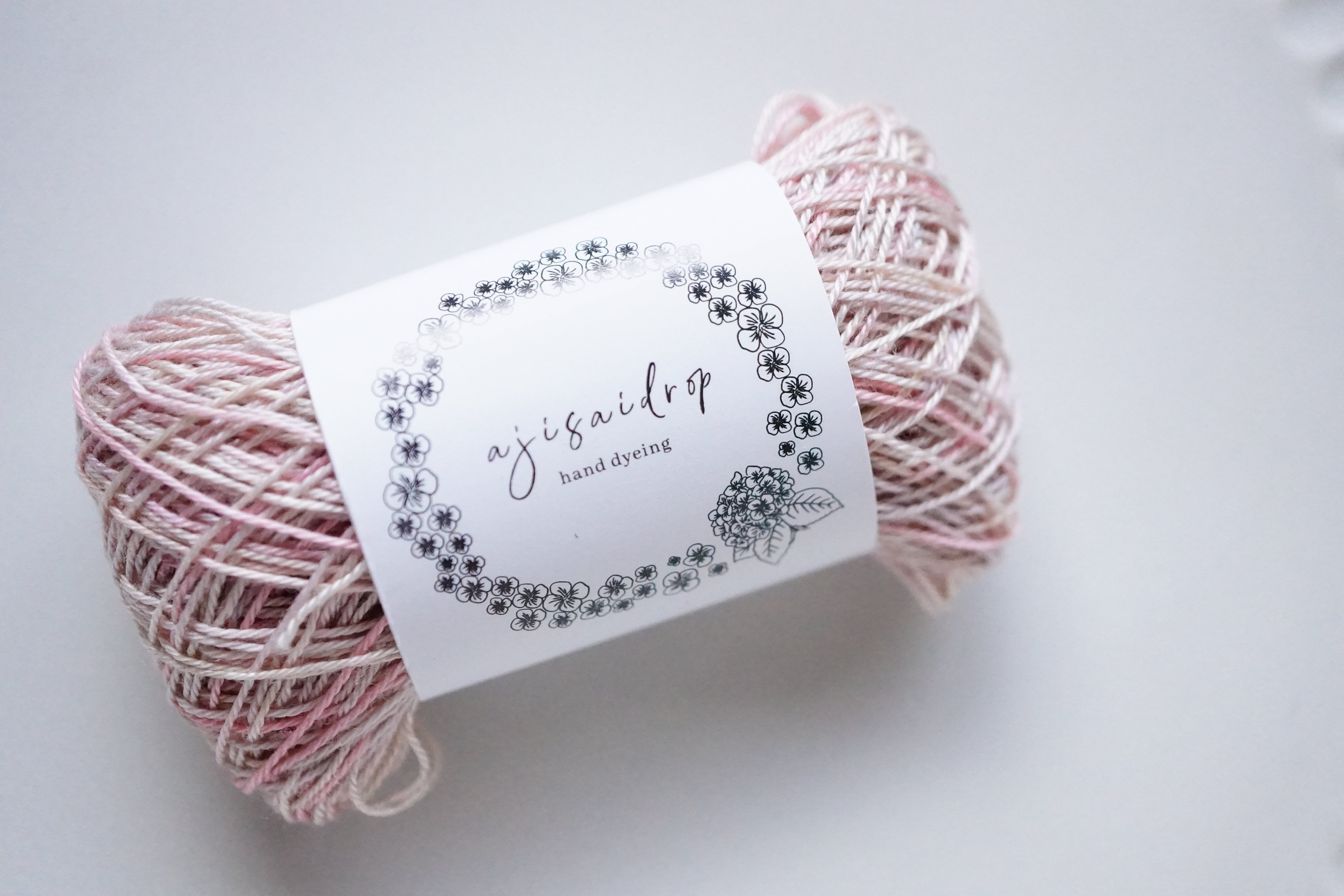 柔らかなベージュを基調に、桜の花びらのような淡いピンクがふんわりと混ざり合う、アンティークレースのような繊細な段染め糸。