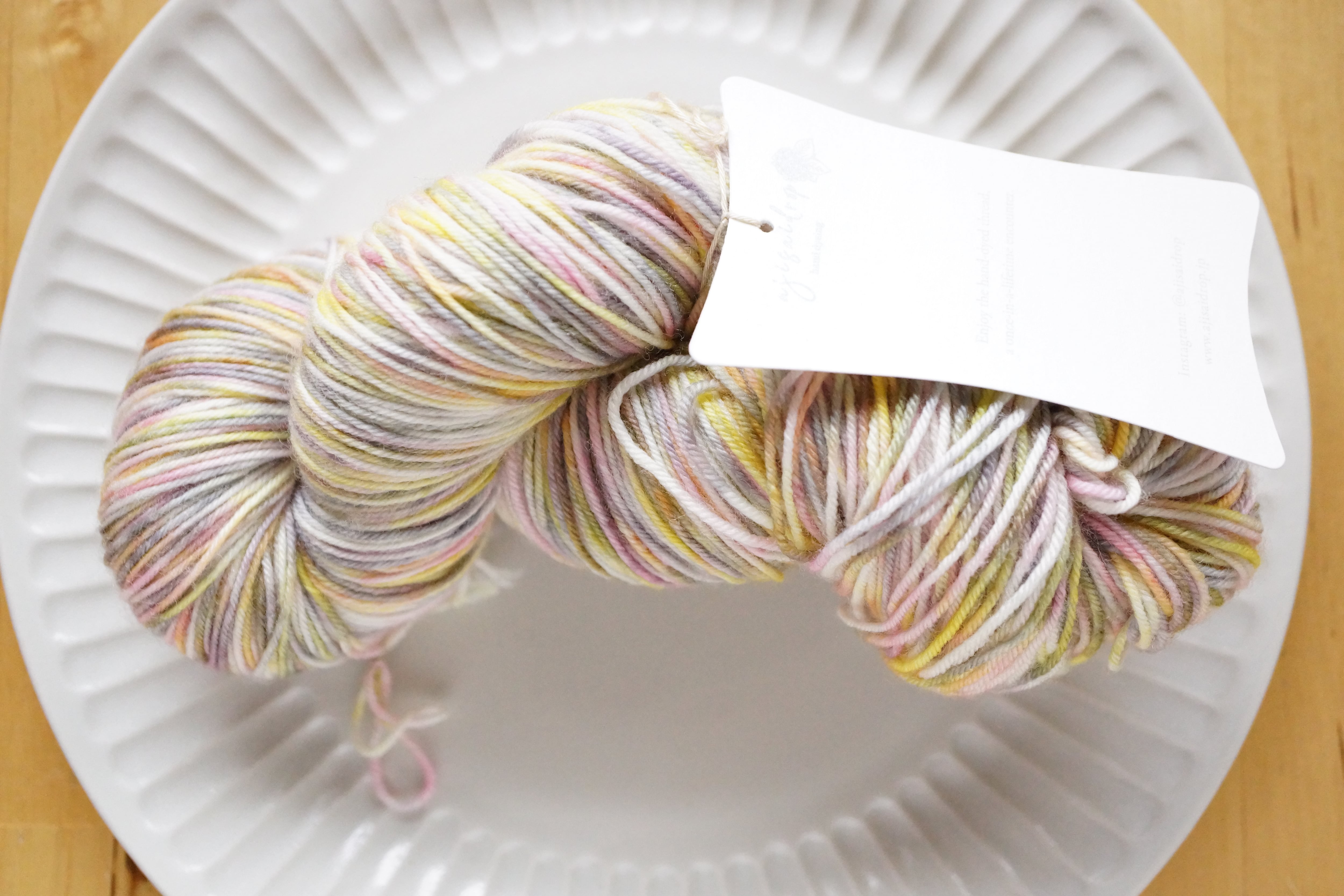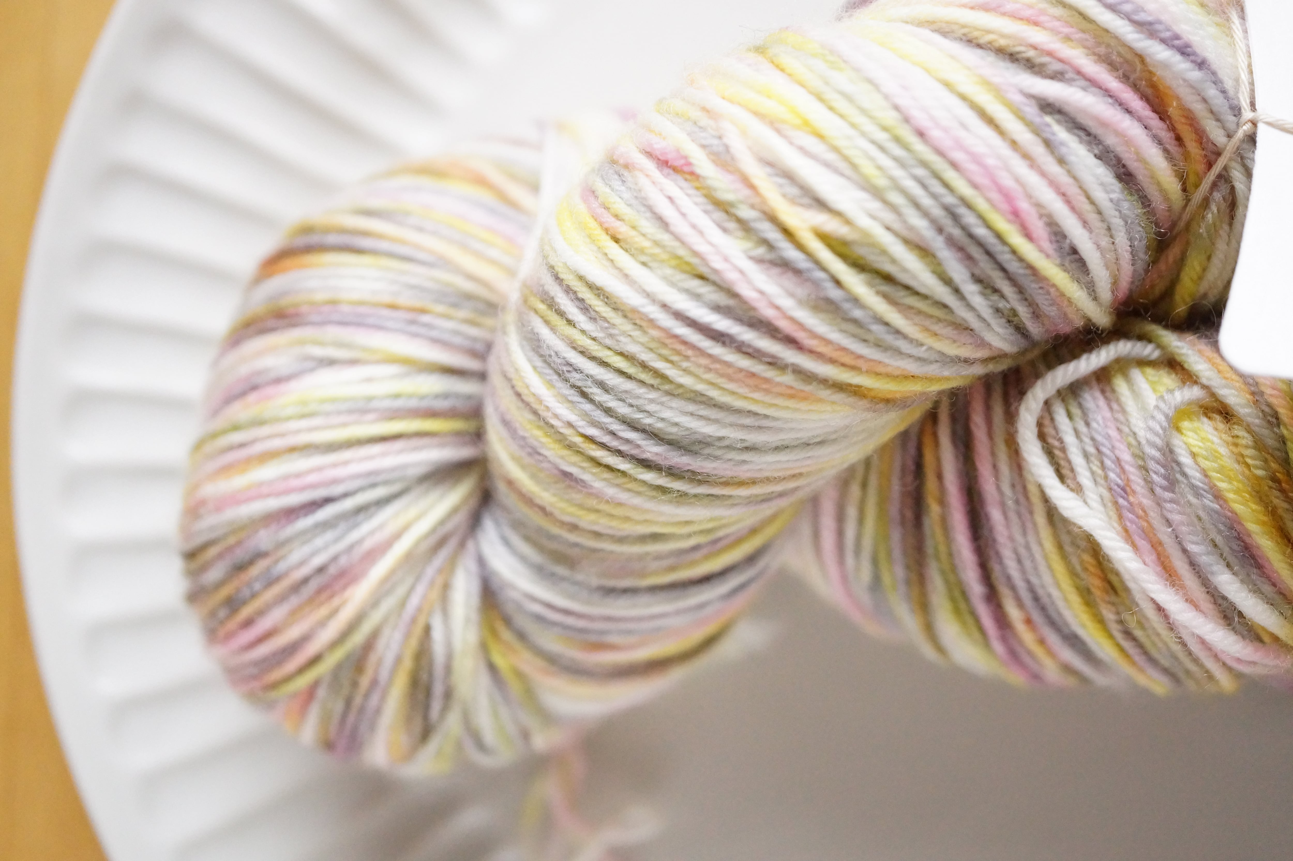 This skein is inspired by a small, quiet patisserie resting atop soft white clouds drifting through the sky.