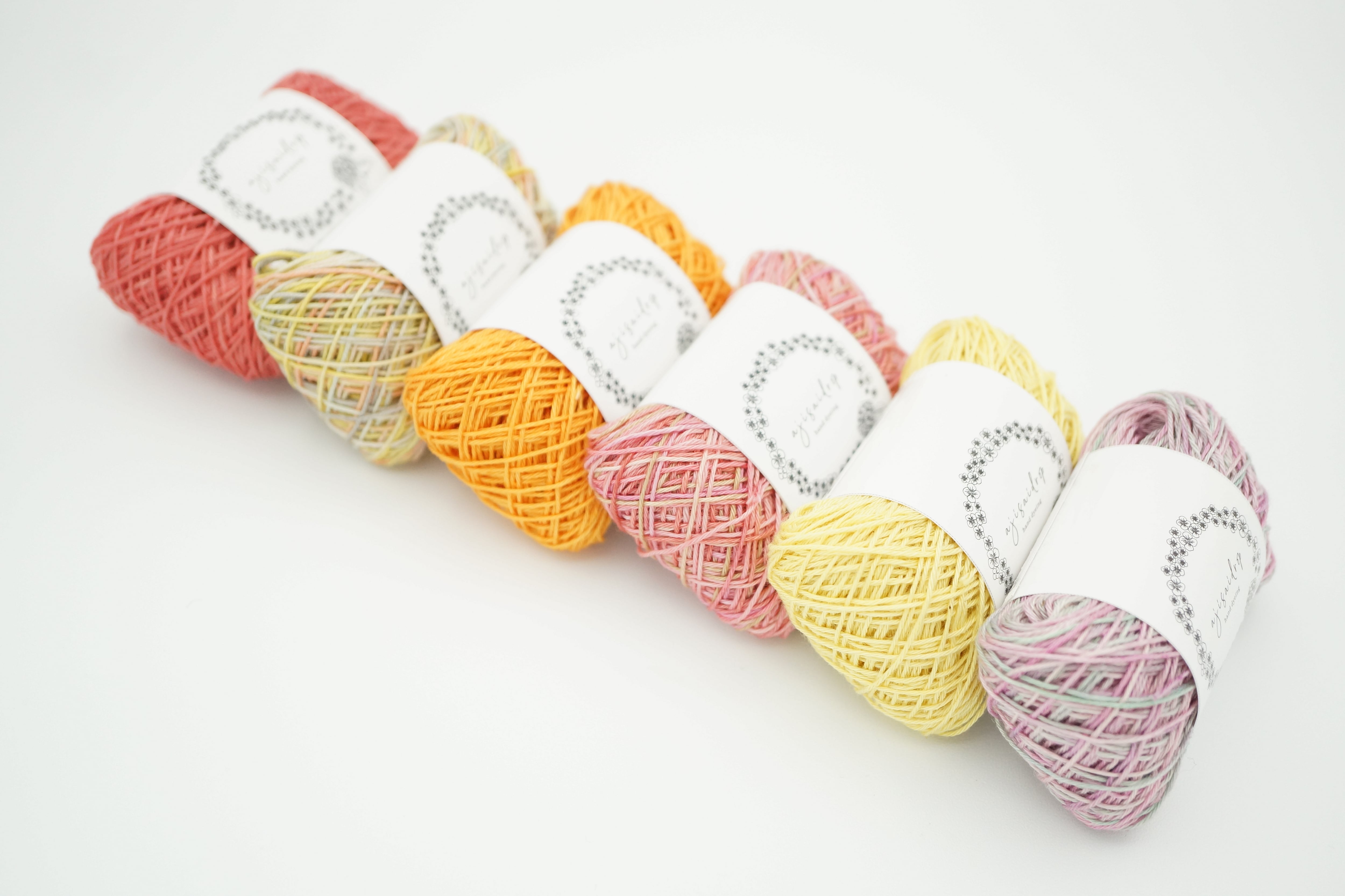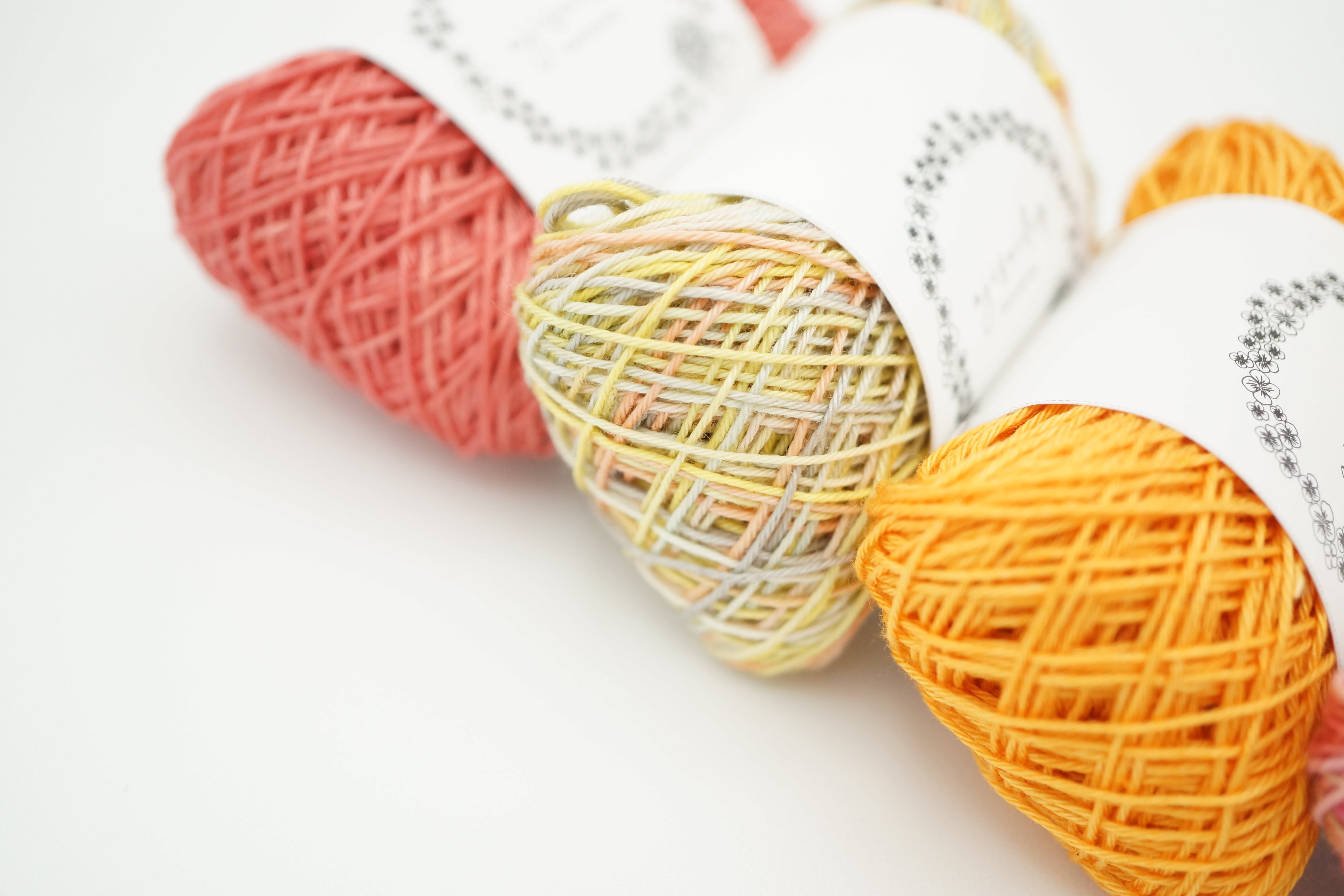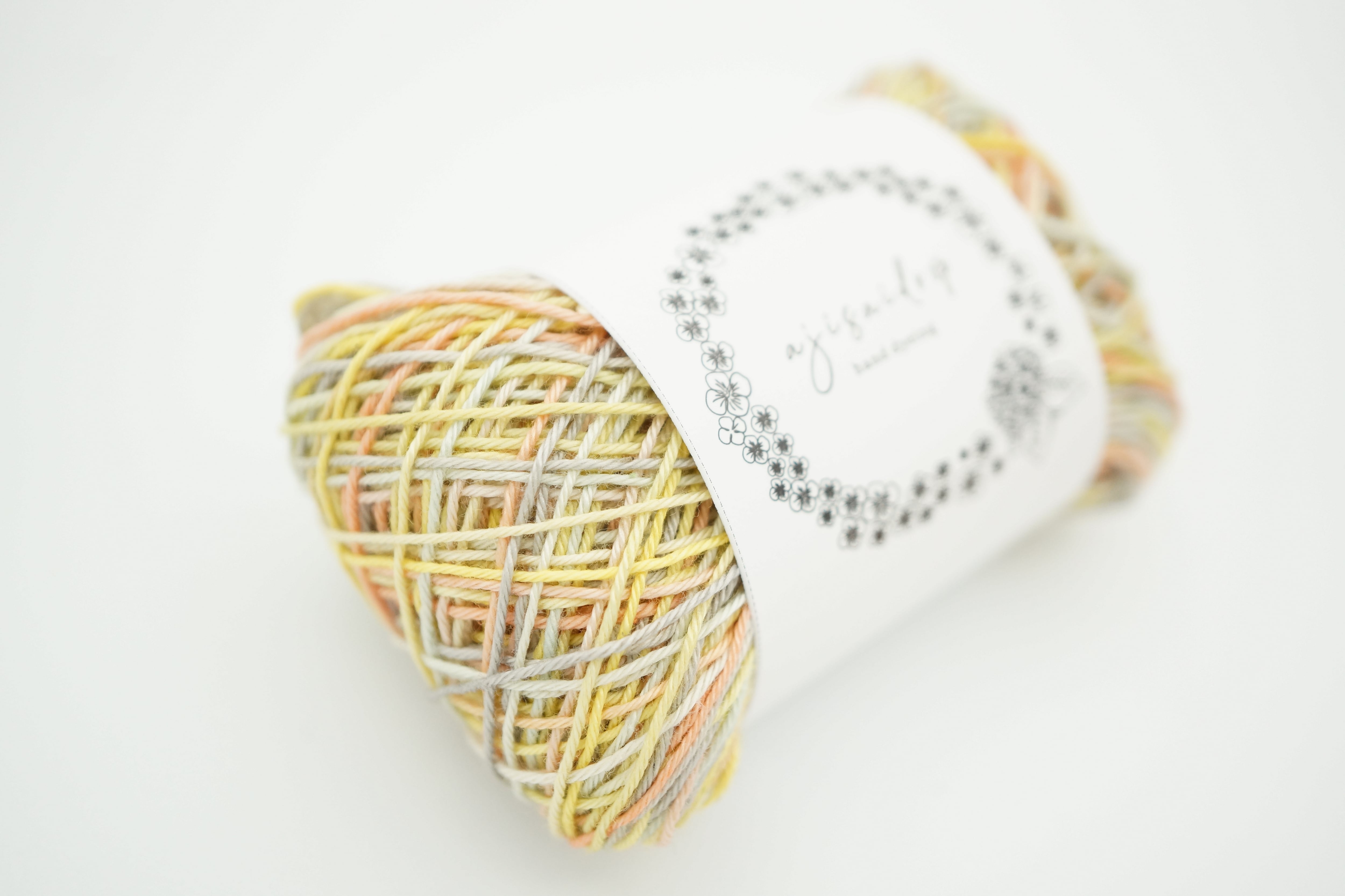 段染めの規則的な色の変化ではなく、ランダムに色が変わっていく、色の変化をより楽しめる糸です。