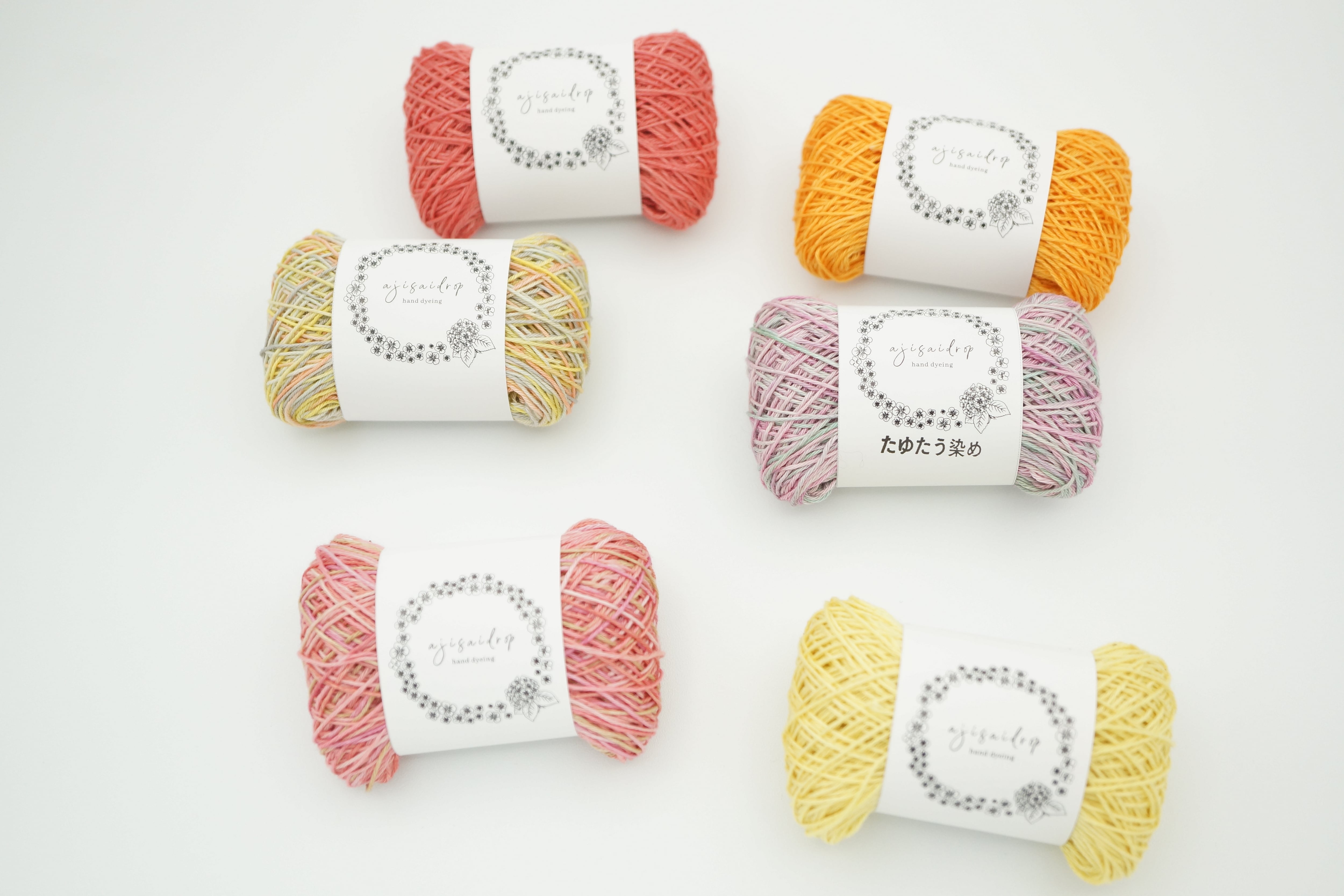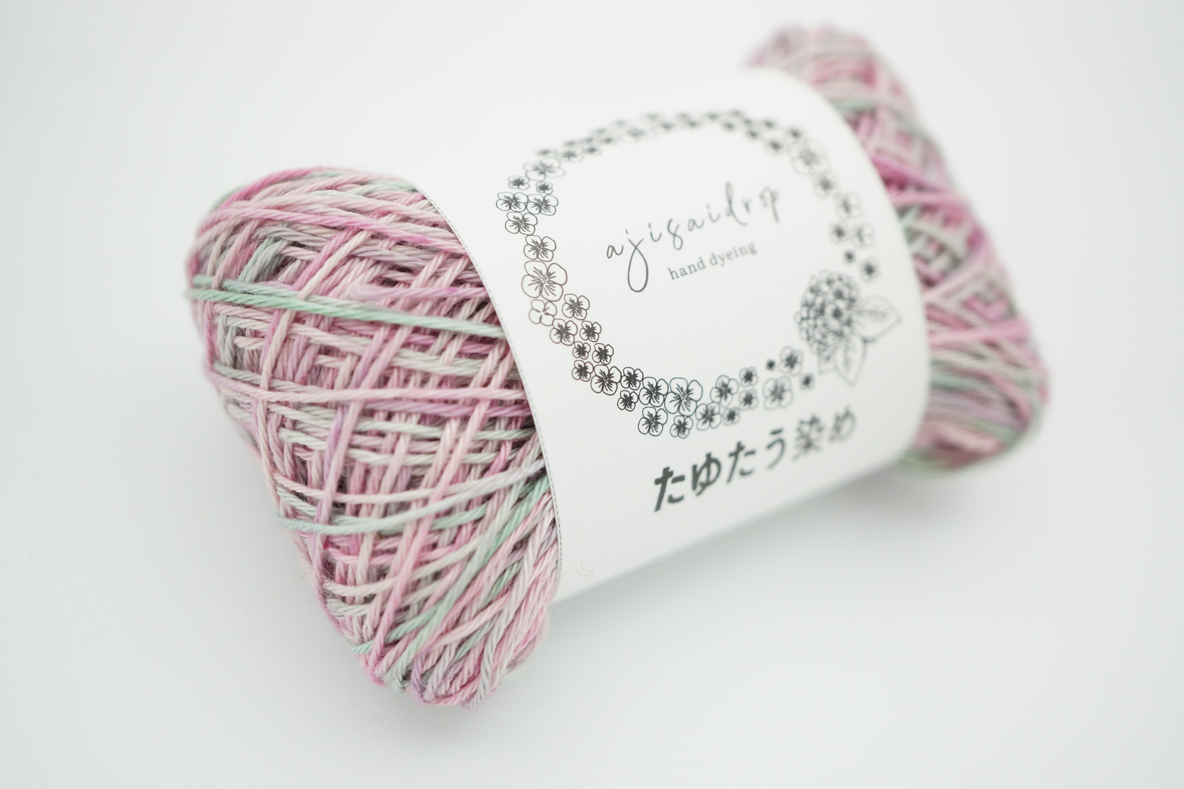 It includes my original “Tayutau” dyeing style, where colors drift and change softly at random rather than in regular repeats, creating threads rich in subtle variation. The name comes from the beautiful way the dyes themselves seem to float and mingle during the process.