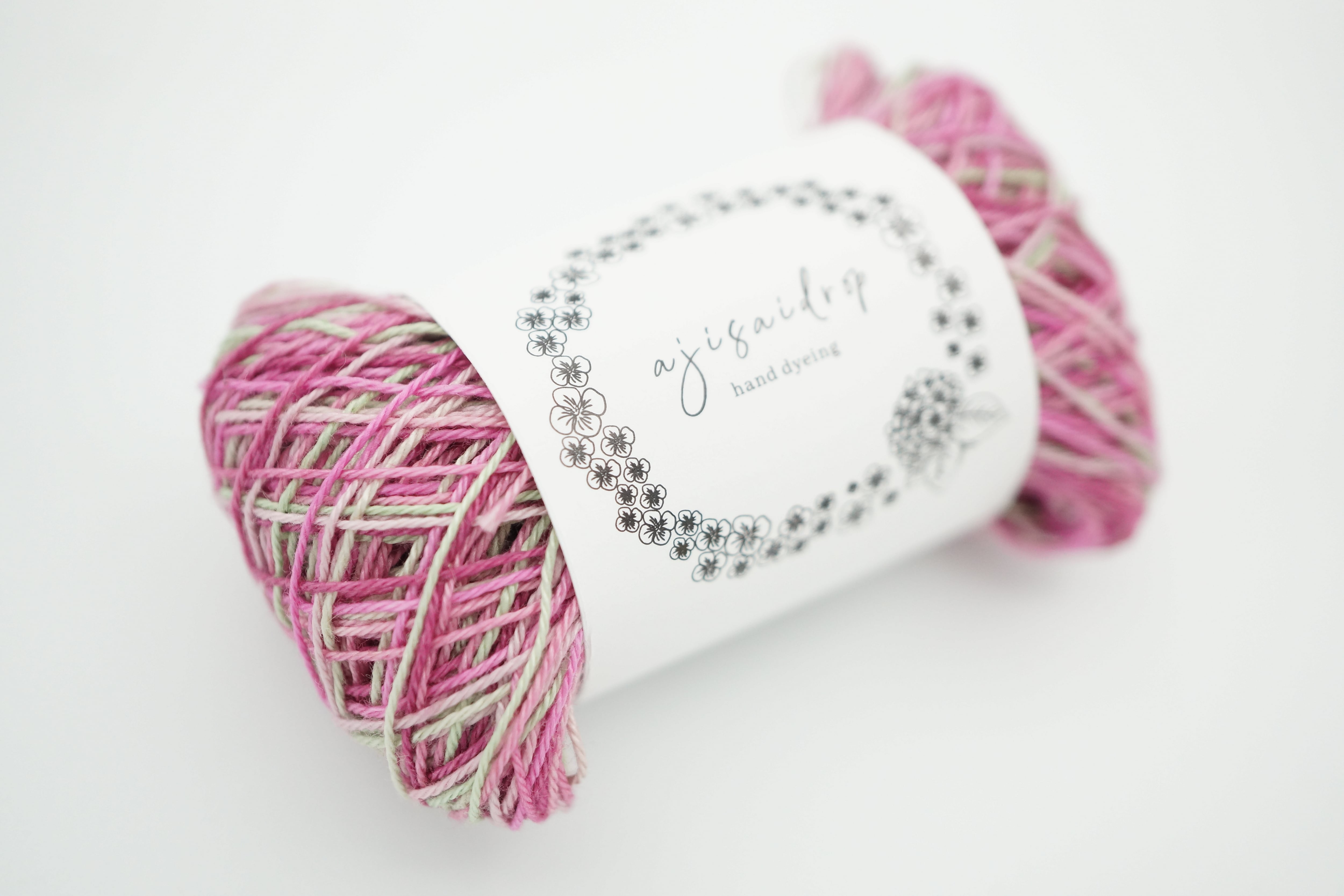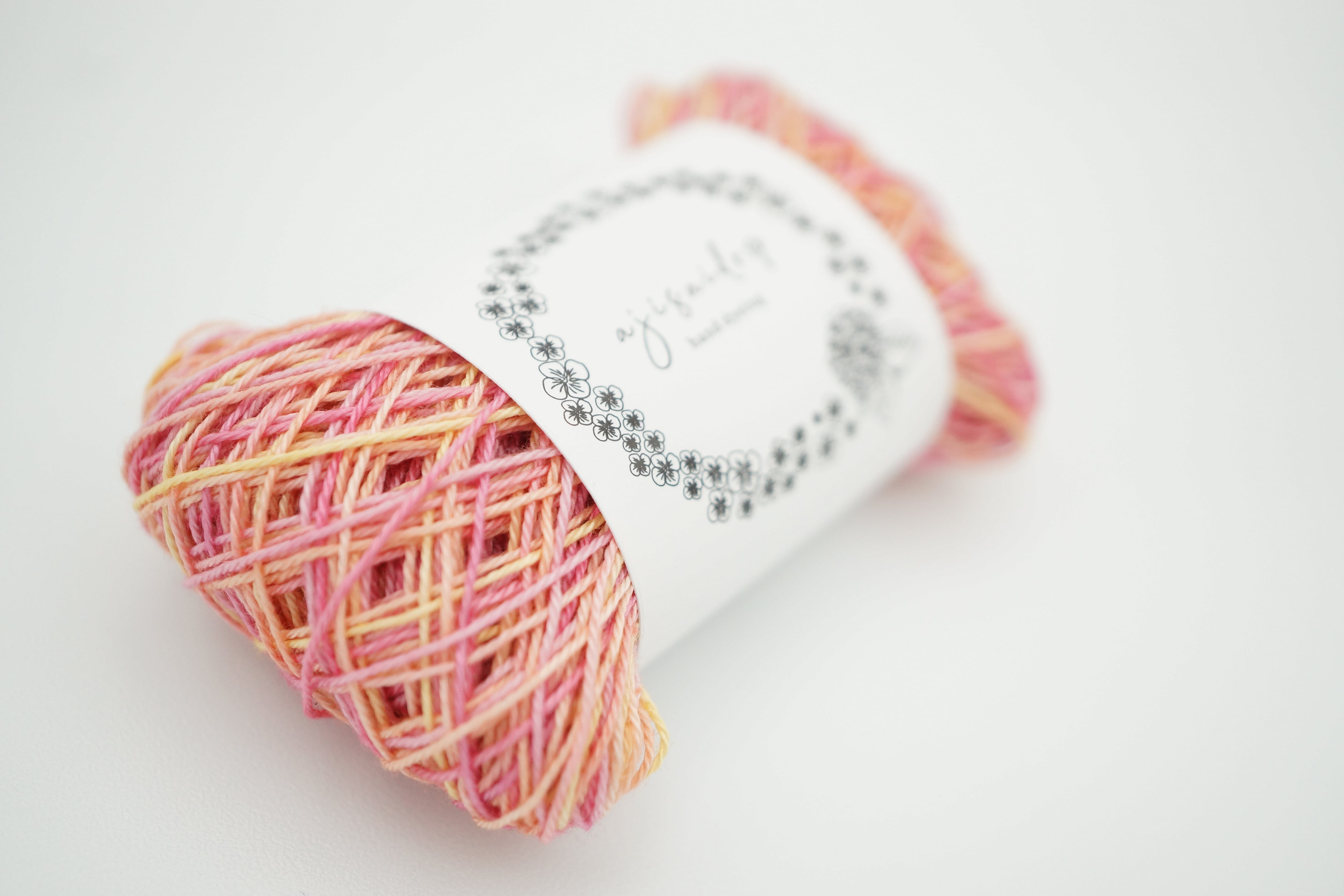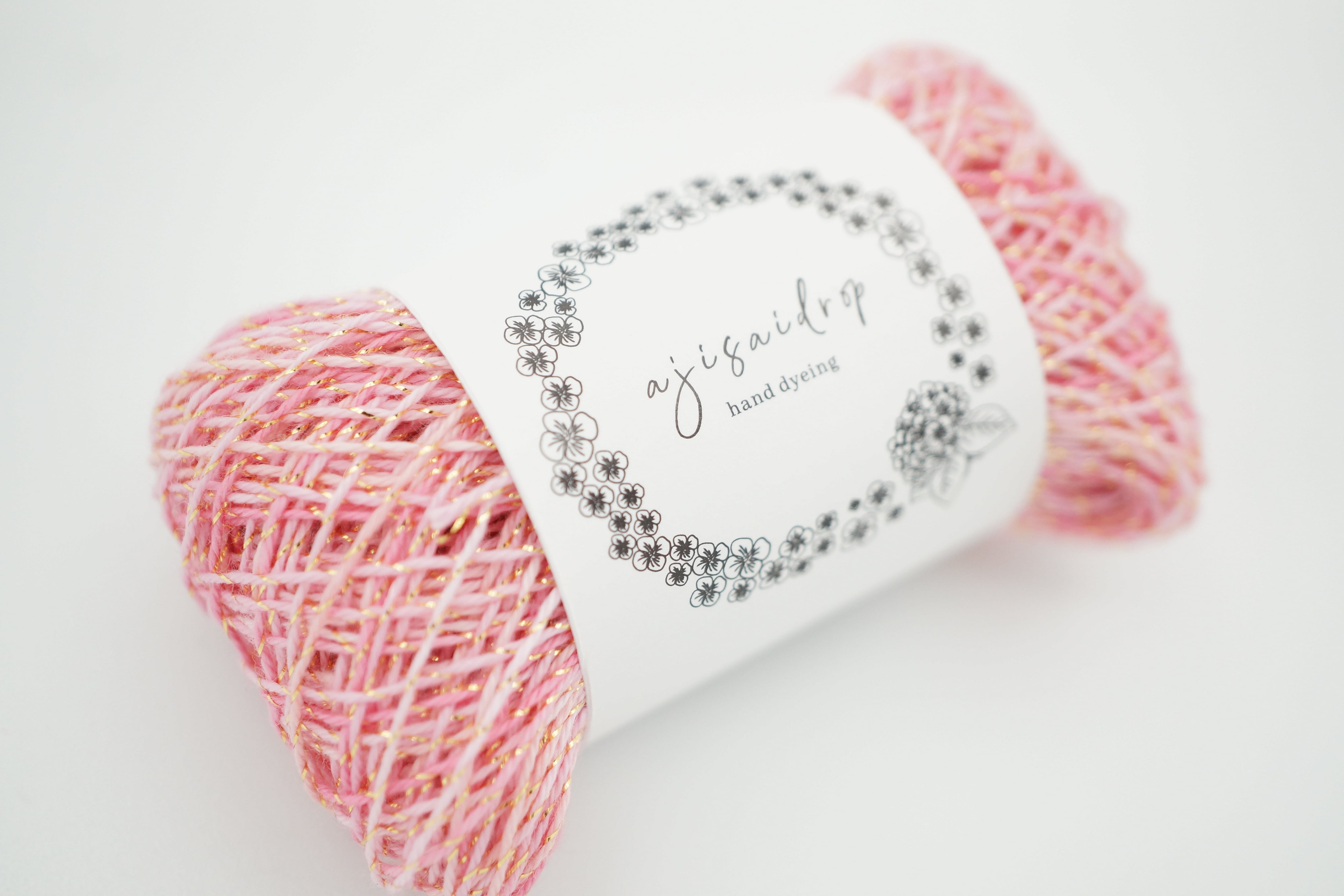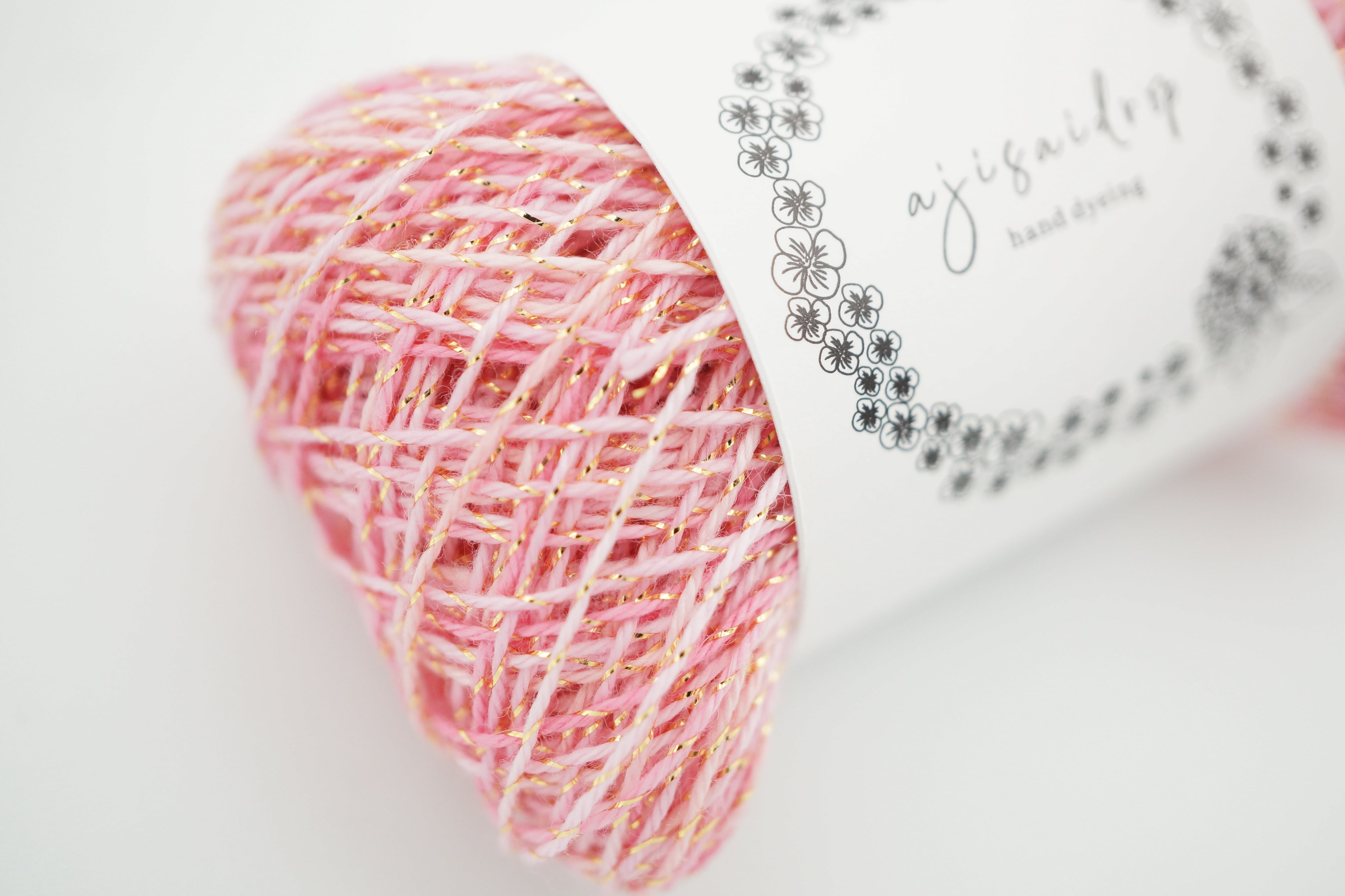桜をイメージしたピンクのラメ糸はピンク系の段染めになっています。