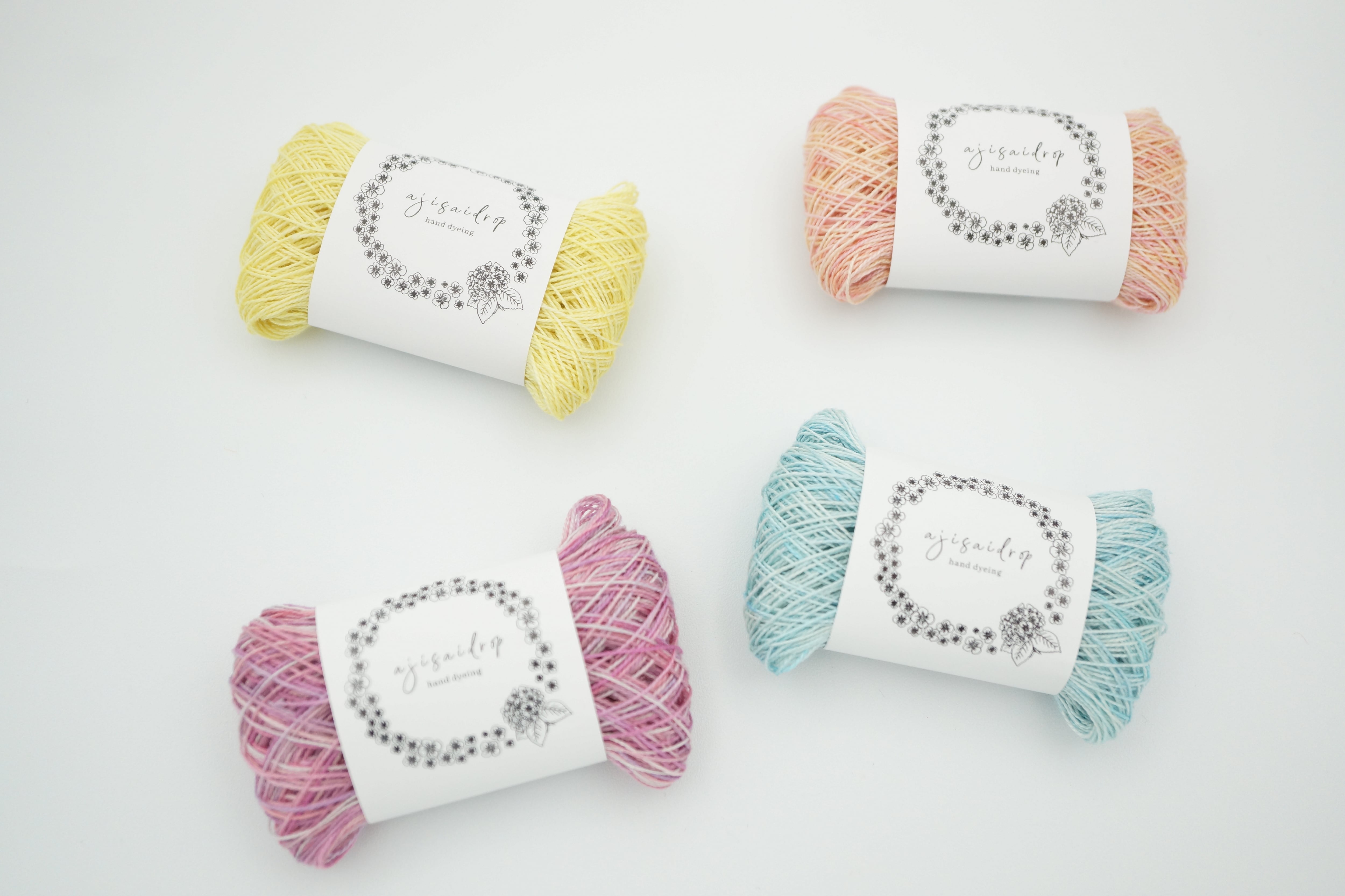 澄み渡る空のブルー、柔らかな光を吸い込んだレモンイエロー、そして咲き始めの花びらのようなピンク系2種。